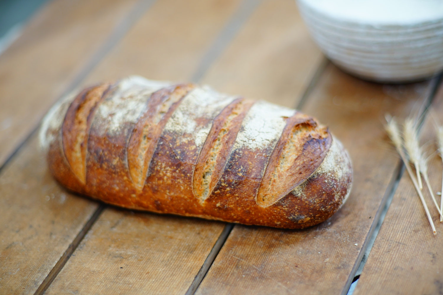 自社農場や地元の契約生産者さんが育てたオーガニックライ麦を石臼で挽いた全粒粉と砕きライ麦を使用。